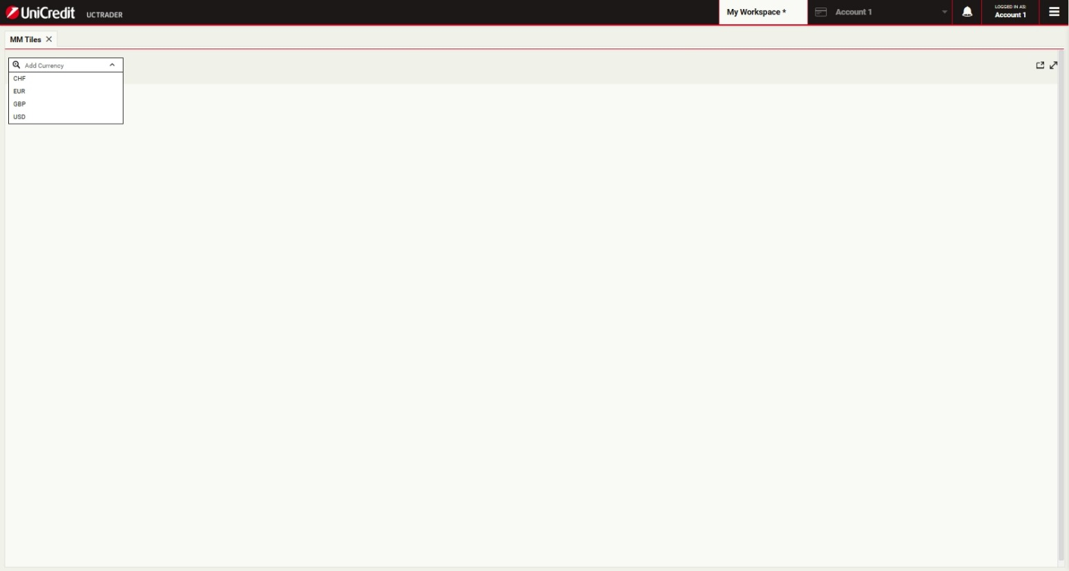To add a trade tile to the MM Tiles, select a currency pair from the currency-pair picker