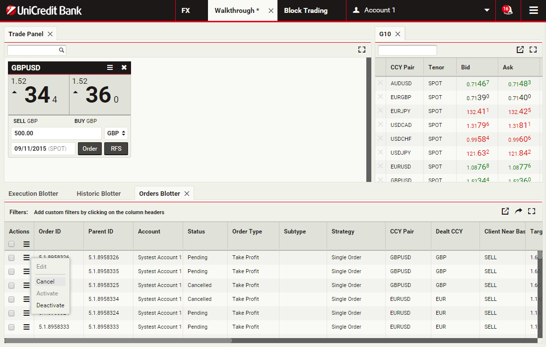 You can activate, deactivate, edit and cancel your orders in the Orders Blotter.