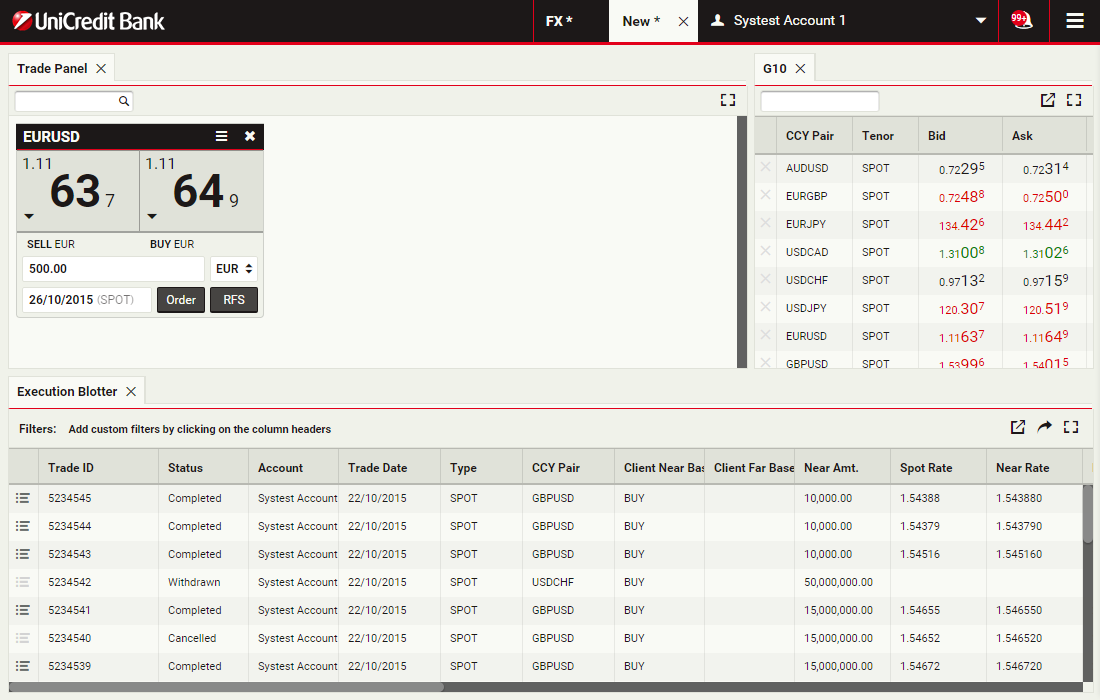 Trading tickets allow you to request an executable streaming quote for spot, outright forwards, flexi forwards and swaps. As soon as you see a price on the ticket, you can click and immediately execute your deal.