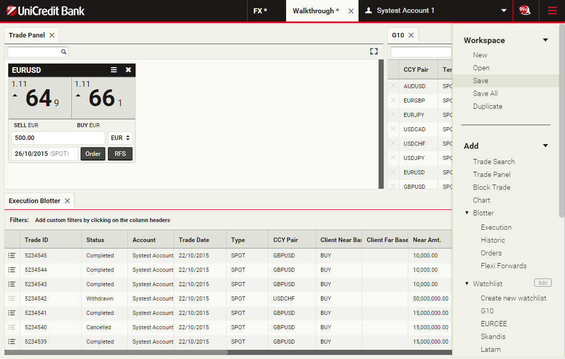 For the fastest possible execution, we offer one-click trading straight from the trading tile. Alternatively, we can offer double-click trading for added peace of mind. For more information or to request enablement of this feature, please contact your sales person
